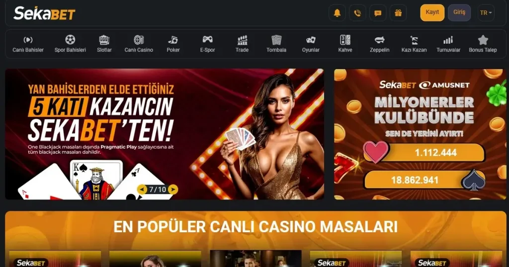 Sekabet’in casino bölümünde, dünyanın en iyi oyun sağlayıcılarından alınan binlerce slot oyunu, masa oyunları ve jackpotlar bulunur. Canlı casino bölümünde ise gerçek krupiyeler eşliğinde Rulet, Blackjack, Baccarat ve Poker gibi oyunları canlı olarak oynayabilirsiniz. Bu deneyim, gerçek bir kumarhane atmosferini evinize taşır.