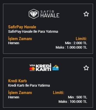 Her yöntemin kendine ait minimum ve maksimum yatırım limitleri bulunmaktadır. Güncel limitler için siteyi kontrol edebilirsiniz.
